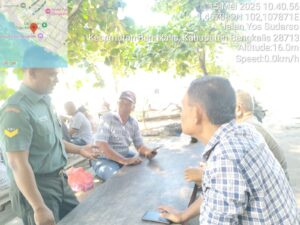 Pesisirnasional.com|Bengkalis – Babinsa Koramil 01/Bengkalis Sertu Mhd Alimran melaksanakan kegiatan komsos bersama masyarakat binaan Kelurahan kota Bengkalis dikampung Pancasila khususnya di Kelurahan kota Bengkalis Kec. Bengkalis Kab. Bengkalis. Kamis pukul 09.30 Wib, (15/5/2025).