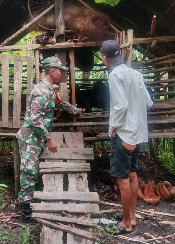 Sertu Muzainudin Melaksanakan Pemeriksaan Hewan Ternak Terhadap Penyakit PMK