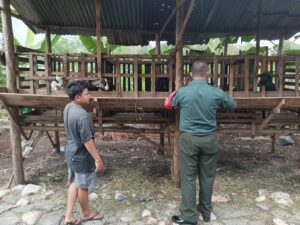 Pesisirnasional.com|Bengkalis – Babinsa Koramil 01/Bengkalia Sertu Syafrizal melaksanakan pengecekan hewan ternak dalam rangka mencegah penyakit PMK pada hewan ternak yang bertempat di desa Kelapapati Kec. Bengkalis Kab. Bengkalis. Rabu pukul 09.15 Wib, (14/5/2025).