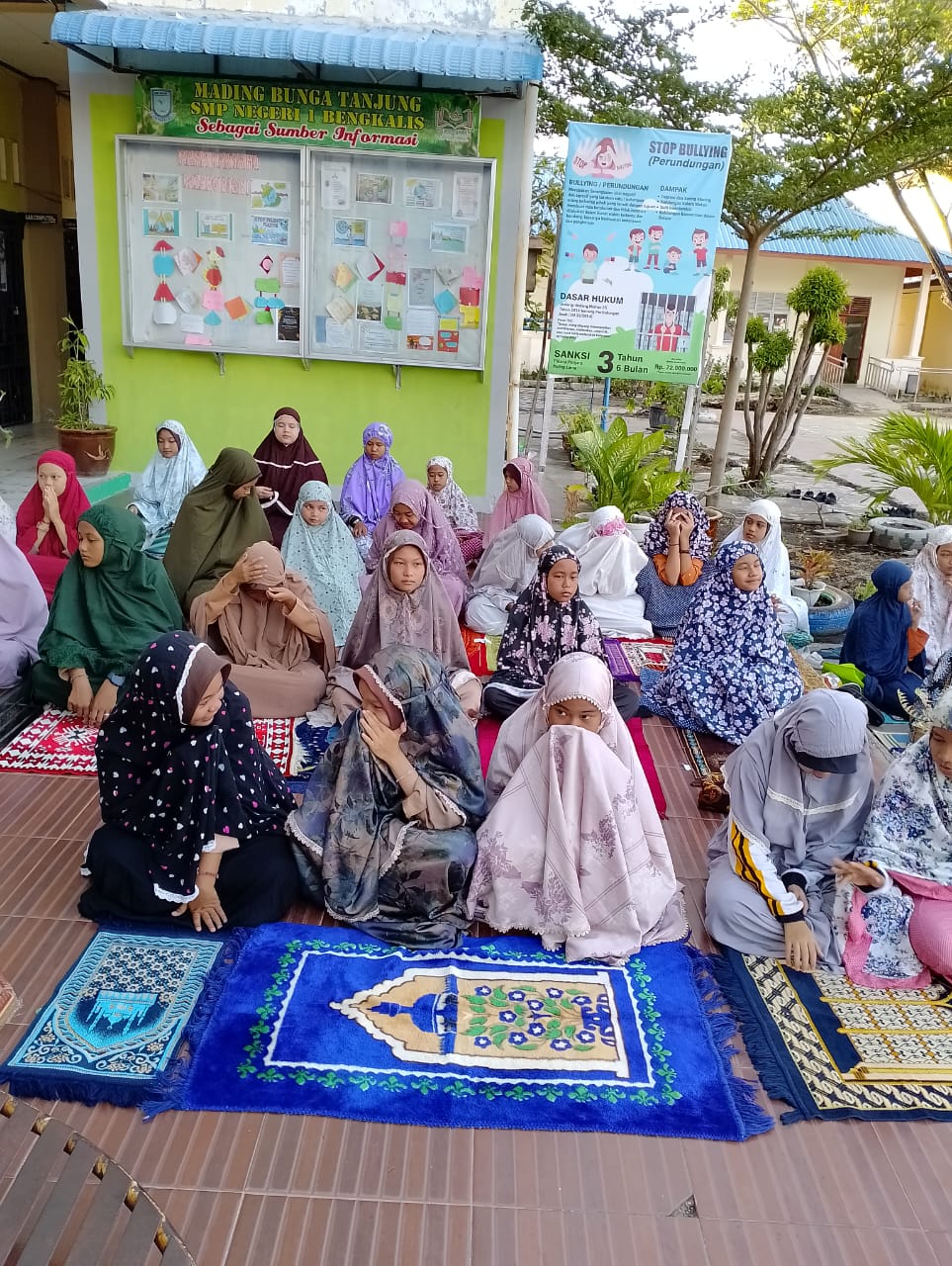 Tak terkecuali bagi siswa-siswi SMPN 1 Bengkalis beserta seluruh majelis guru dan staf hari ini melaksanakan kegiatan pembiasaan pagi dengan beribadah menurut Agama dan Kepercayaan masing-masing. Sebagaimana contoh adalah siswa-siswi beragama Islam ( Muslim/ Muslimah ) yaitu dengan dengan melakukan sholat duha di lapangan, dimana bagi siswa muslim membawa sajadah dan muslimah membawa mukena dan sajadah.