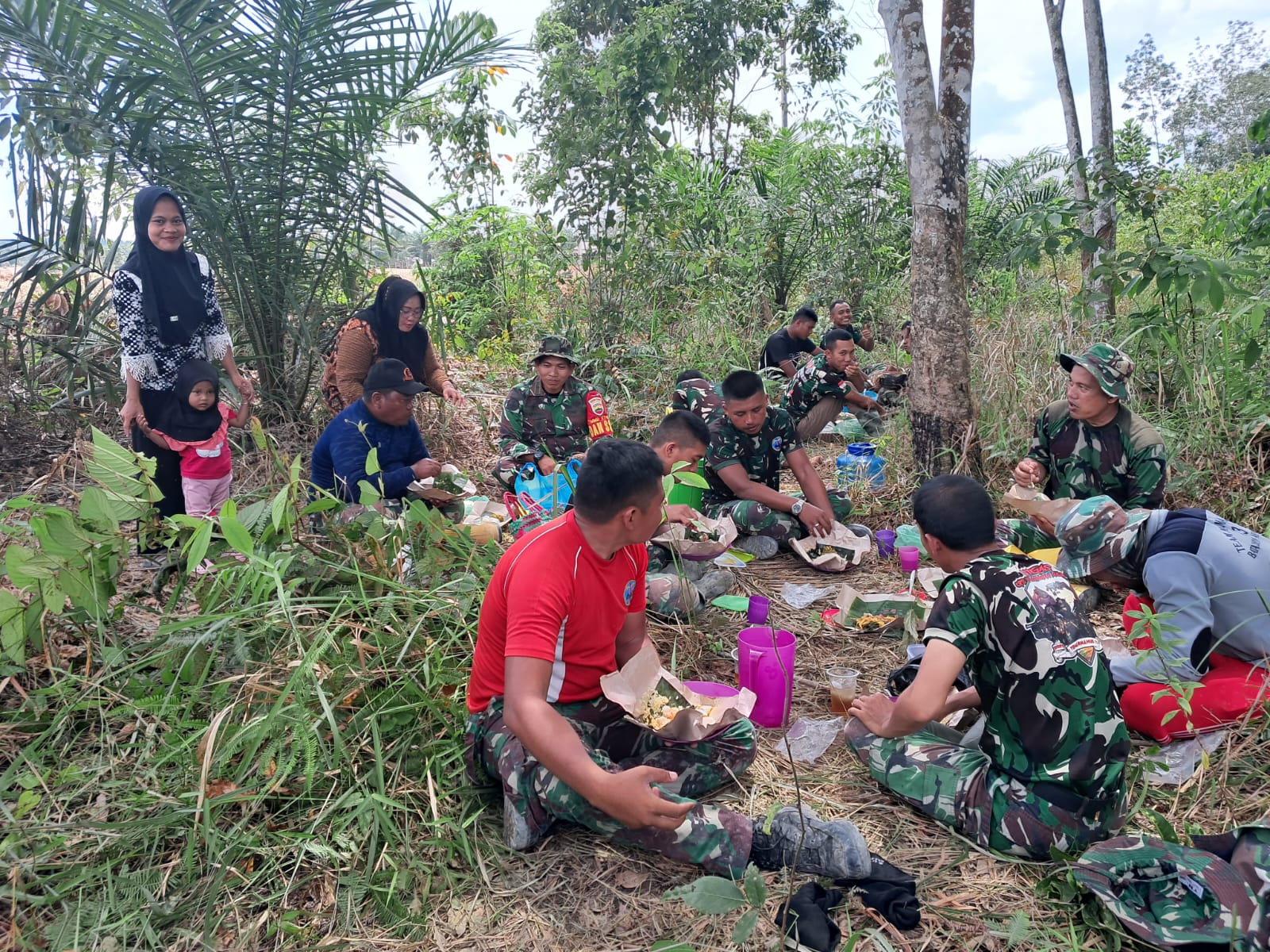 Wujud kebaikan ibu Riska, kami dibawakanmakan siang. Sangat lezat, kami semua puas dan kenyang,” kata Dan SSK TMMD, Letda. Arh. Sumaryono.