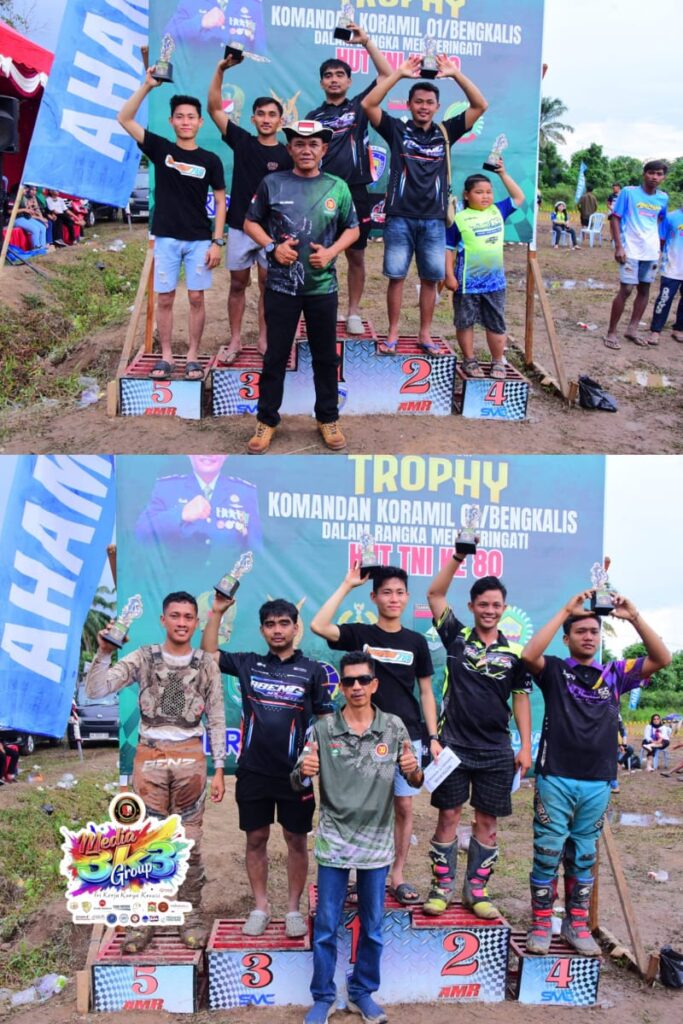 Foto Insert : Sang Juara Menerima Piala Kejuaraan Grasstrack Motorcross Piala Danramil 01/Bengkalis Dalam Rangka Hut Tni Ke-80 Berlangsung Di Sirkuit Bengkalis Adventure Wonosari.