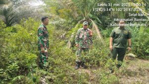 Pesisirnasional.com|Bantan – Babinsa Koramil 01/Bengkalis Sertu A. Zamzuri dan Sertu Armansyah bersama Linmas melaksanakan Patroli Karhutla di desa Selat Baru Kec. Bantan Kab. Bengkalis. Sabtu pukul 10.00 Wib, (31/5/2025).