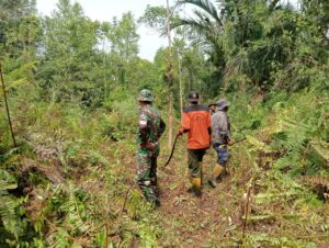 Pesisirnasional.com|Bantan – Babinsa Koramil 01/Bengkalis Peltu Dedek Irwanto dan Serda Joko Kurniadi bersama dua orang warga desa Melaksanakan Patroli dan Sosialisasi Karhutla (Kebakaran hutan dan lahan) di Desa Suka maju Kec.Bantan Kab.Bengkalis. Senin pukul 10.16 Wib, (1/9/2025).