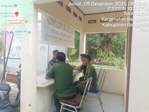Pesisirnssional.com|Bengkalis – Babinsa Koramil 01/Bengkalis Serda M.H.Gunawan melaksanakan kegiatan komsos bersama masyarakat binaan Desa Teluk Latak di Kampung Pancasila khususnya di Kec. Bengkalis Kab. Bengkalis. Jum’at pukul 09.00 Wib, (5/12/2025).