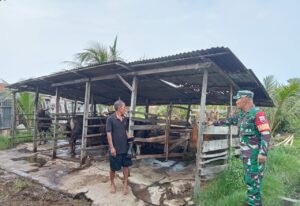 Pesisirnasional.com|Bengkalis – Babinsa Koramil 01/Bkls Serma Rayen Melaksanakan pengecekan hewan ternak dalam rangka mencegah penyakit PMK pada hewan ternak yang bertempat di Desa Sebauk Kec. Bengkalis