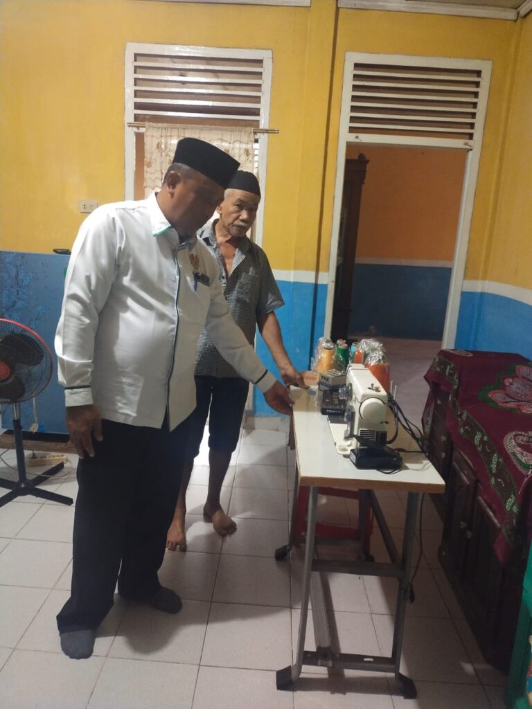 Foto Ketua Baznas Bengkalis Ismail melalui monitoring penyaluran zakat produktif di usaha jahit Bizar Tailor di Desa Senggoro, Kecamatan Bengkalis, Senin (10/11/2025).