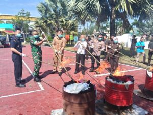 Barang bukti yang dimusnahkan merupakan barang bukti perkara tindak pidana umum dan perkara tindak pidana khusus. Barang bukti itu sudah inkracht atau memiliki kekuatan hukum tetap yang diputus oleh Pengadilan Negeri Kabupaten Bengkalis.