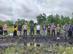 Pesisirnasional.com|Bantan- Minggu pukul 08.00 wib, Dandim 0303/Bengkalis diwakili Danramil 01/Bengkalis Kapten Cpl.Farimus Hendriko menghadiri kegiatan restorasi mangrove sebagai peningkatan ekonomi masyarakat melalui pariwisata dan perdagangan carbon dan restorasi adopsi pohon mangrove 511 vegetasi rhizophora sp dan avicennia sp bertempat di Pantai Penampar desa Deluk Kec.bantan Kab.bengkalis (24 September 2023).