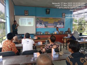 Pesisirnasional.com|Bengkalis – Danramil 01/Bengkalis Kapten Arm.Yogi Sudarso Melaksanakan Sosialisasi Bahannya kebakaran lahan dan hutan Di Desa Kelebuk kec Bengkalis kab Bengkalis. Rabu pukul 09.30 Wib, (27/11/2025).