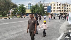 Pesisirnasional.com|Bengkalis – Danramil Kapten Arm Yogi Sudarso Ikut serta dalam kegiatan acara Car Free Day dan jalan Santai di kelurahan Bengkalis di jalan Sudirman lapangan tugu Kec Bengkalis Kab Bengkalis. Minggu (21/12/2025).
