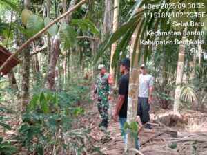 Pesisirnasional.com|Bantan – Babinsa Koramil 01/Bengkalis Sertu Armansyah bersama Satlinmas dan warga desa Melaksanakan Patroli Karhutla di Desa Berancah Kec. Bantan Kab. Bengkalis. Kamis pukul 09.00 Wib, (4/12/2025).