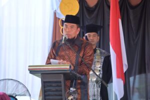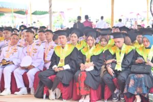 – Namun demikian, kami ingatkan juga bahwa keberhasilan akademik yang saudara-saudari raih hari ini, bukanlah garis akhir, melainkan titik tolak bagi saudara-saudari untuk ikut berkontribusi secara nyata dalam pembangunan daerah dan bangsa. apalagi, gelar yang kalian sandang adalah sebuah kehormatan dan juga amanah. oleh karenanya, jadikan gelar kesarjanaan yang kalian dapatkan ini, sebagai bekal untuk ikut membawa daerah kita ini menjadi negeri yang bermarwah, maju dan sejahtera serta unggul di indonesia.wisudawan/wisudawati, hadirin yang kami banggakan,
