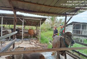 Pesisirnasional.com|Bengkalis – Babinsa Koramil 01/Bkls Serma Raiyen Melaksanakan Pengecekan Hewan Ternak Dalam Rangka Mencegah Penyakit PMK Pada Hewan Ternak yang bertempat di Desa Sebauk