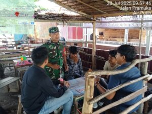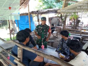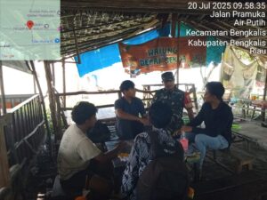 Pesisirnasional.com|Bengkalis – Babinsa Koramil 01/Bengkalis Serda Asnawi melaksanakan kegiatan komsos bersama masyarakat desa Air putih dikampung Pancasila khususnya di Desa Air putih Kec. Bengkalis Kab. Bengkalis. Minggu pukul 09.30 Wib, (20/7/2025).