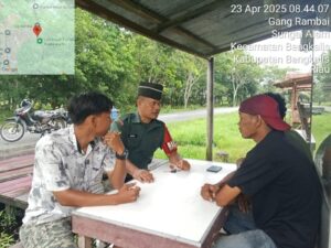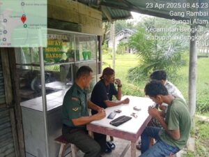 Pesisirnasional.com|Bengkalis – Babinsa Koramil 01/Bengkalis Serda Asnawi melaksanakan kegiatan komsos bersama masyarakat binaan Kuala Alam dikampung Pancasila khususnya di desa Kuala Alam Kec. Bengkalis Kab. Bengkalis. Rabu pukul 08.30 Wib, (23/4/2025).