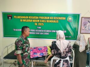 Pesisirnasional.com|Bengkalis – Dandim 0303/Bengkalis Letkol Inf Haris Nur Priatno, S.Sos., M.IP diwakili Bati Bakti Sertu T. Samosir menghadiri kegiatan Program KB Kesehatan Kodim 0303/Bengkalis TA. 2025 bertempat di Pustu Desa Senggoro Kec. Bengkalis Kab. Bengkalis. Jum’at pukul 08.00 Wib, (7/11/2025).