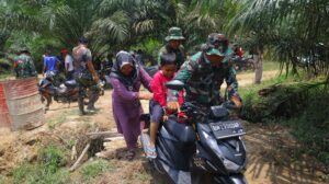 Beruntung, satgas TMMD Bengkalis dipimpin Danramil 03 Mandau Kapten Arh. Jemirianto memiliki hati dan karakter mulia. Setiap warga, utamanya anak-anak dan kaum ibu yang melewati jembatan darurat tersebut pasti dibantu perlintasannya.